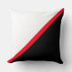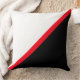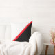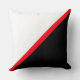 Elegantes, schwarz-weißes Kissen, diagonal roter Streifen zwischen Schwarz und Weiß.