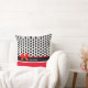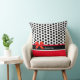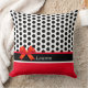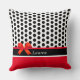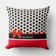 Elegante schwarze Polka-Punkte, rotes Band auf weißem Kissen.