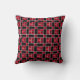Wunderschönes Kissen mit elegantem Schwarz, Rot und Weiß. Dieses moderne Muster enthält Quadrate, Kreuze, Diamanten und Pyramiden.