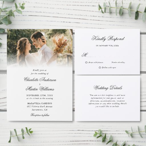 Elegantes Script Black and White Wedding RSVP