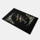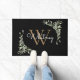 Elegante personalisierte Aquarell Blütenmonogramm-Doormat mit einer goldenen Monogramm-Initiale mit Ihrem Namen Set in einem modernen weißen Skript auf einem schicken schwarzen Hintergrund. Entwickelt von Thisisnotme©