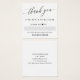 Vielen Dank für Ihre Einkauf Packung in einem eleganten minimalistischen Design mit einem Herz, wo die Person, die das Paket vorbereitet, ihren Namen von Hand für eine persönliche Touch unterschreiben können. Fügen Sie Ihre Kontaktdaten auf der anderen Seite des Dankes für Ihre Bestellkarte hinzu. Sie können auch einen Rabattcode für den nächsten Kauf Ihrer Kunden aufschreiben.