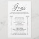 Möchten Sie ein Spiel, das Ihren Brautpartys Spaß macht und sie zum Mingeln und Lachen bringt? Schauen Sie nicht weiter als das elegante Script Guess Who Brautparty Game! Dieses minimalistische Schwarz-Weiß-Spiel hat Gäste, die die Antworten von Braut und Bräutigam auf leichtere Beziehungsfragen abstimmen. Es ist eine tolle Art zu sehen, wer wirklich die Braut und Bräutigam am besten kennt! Das schlichte, elegante Design passt zu jedem Brautparty und macht den Braut einen besonderen Halt.