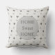 Elegantes silberfarbenes und graues Herzmuster auf hellem, silberfarbenem Throw Kissen. Der Text: Zuhause Sweet Zuhause ist nur auf der Vorderseite. Hellgraue dekorative Kissen, die zu den meisten Farben passen.