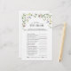 Modernes, elegantes Brautparty-Spiel "Wer die Braut am besten kennt" mit sommerlichen Wildblumen in Aquarelltönen wie Süßerbsen, Lupinen, Schnappdragons und vielem mehr, in hellen, sommerlichen Farbtönen wie Rosa, Lilie, Lavendel, Gelb, Blues und zarten grünen botanischen Blätter. Personalisieren Sie Ihre Fragen in schwarz, betont mit schönen modernen handgeschriebenen Kalligraphie. Teil einer koordinierten Suite. Suite hier ansehen: https://www.zazzle.com/elegant_summer_wildflower_floral_bridal_shower_invitation-256486599269422892 Kontakt-Designer für passende Produkte. Copyright Anastasia Surridge für Elegant Invites, alle Rechte vorbehalten.