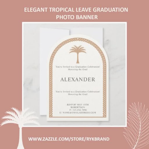 Elegantes Tropical Verlass Abschluss Foto Banner. Feiern Sie stilvoll mit diesem eleganten Tropical Verlass Abschluss Foto Banner. Mit einem atemberaubenden Vollbild-Layout ist diese Karte vollständig personalisiert mit dem Namen des Absolventen, dem Abschluss Jahr, und sowohl der Schule, die sie abgeschlossen haben, als auch der Schule, die sie als Nächstes besuchen werden. Bitte: Für Hilfe bei Planänderungen oder Personalisierungen, Farbveränderungen, Größenanpassungen, dem Austausch des Plans an einen anderen Gegenstand oder bei der unwahrscheinlichen Planung von Dingen, kontaktieren Sie den Ersteller Einige Zeit vor kurzem Anfrage mittels der Zazzle Chat MESSAGE