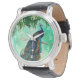 Uhr, Vintage Männeruhr mit schwarzem Lederarmband