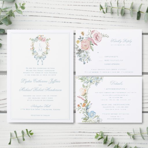 Elegant Floral Wreath Crest Monogram WeddingDesignt von Alyssa Ernst