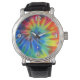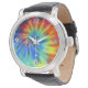 Die Vintage Armbanduhr aus schwarzem Leder mit dem Bild eines elektrischen Regenbogen-gefärbte Krawatte. Optionale Uhr Sehen Sie sich die passenden Ohrringe und den runden Charme an. Sehen Sie die gesamte Sammlung This & That Watch im Abschnitt ACCESSORIES.