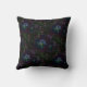 Was für ein dramatisches abstraktes Muster an diesem dekorativen Kissen! Elektrische Rose sind in Rot, Blau, Magenta, Gelb, Grün und lila. Der schwarze Hintergrund ergänzt das magische, geheimnisvolle Gefühl. Ein Spiegelbild ist auf der Rückseite.