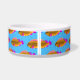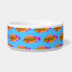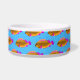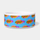 Diese lustige Hundeschüssel ist mit hellen Orange und Rosa tropischen Fischen auf einem Hintergrund der Line Art und einem schönen Ozean Blau.
