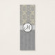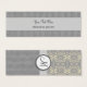 Ein nahtloses digitales Musterbild von Elfenbeincreme und silbergrauem Damast oben, und Vintage, silbergraue Satin-Streifen unten, mit einem Bändchen-Overlay mit einem anpassbaren Text-Siegel in Monogramm.