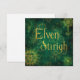 Golden elven script glows against a deep green backdrop, surrounded by mystical symbols and geometric sigils.
