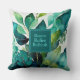 Erleben Sie Wellness-Center-ähnliche Entspannung mit unserem neuen Kissen, das mit üppig grünen und aquamarinen Blättern geschmückt ist. Aquamarin, blau, grün, botanisch, Abstrakt, Boho, modern, Smaragd, Natur, Zeitgenössisch, Zuhause-Dekor GenerativInhalt