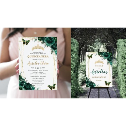 Emerald Green Floral Butterfells Quinceanera Programm