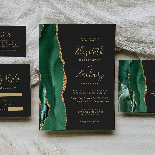 Emerald Green Agate Gold Script Dark WeddingDesignt von Akhates Designs
