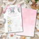 Dieses lustige Baby Duschspiel bietet einen rosa und grauen Elefanten mit Ballons und Konfetti. Ihre Gäste können die Rhythmen des Kinderzimmers lösen, indem sie die Emojis/Emoticons dekodieren. Emoji Key: 1. Hey Diddle Diddle 2. Twinkle Twinkle Little Star 3. Seine Bitsy Spider 4. Fünf kleine Affen springen auf dem Bett 5. Hickory Dickory Dock 6. Der alte MacDonald hatte einen Bauernhof 7. Hush Little Baby 8. Rub-a-Dub-Dub 9. Kleine Miss Muffet 10. Ein zwei klopfen meinen Schuh 11. Jack und 12. Jill. Row Row Row Ihr Boot 13. Es gab eine alte Frau 14. Star Light Star Bright 15. Baa, Baa, Schwarzes Schaf