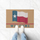 Zeigen Sie Ihre Liebe von Texas mit der Türmatte mit der rot-weiß-blauen Lone Star Flag auf einem dunkelbraunen Hintergrund. Das Wort Willkommen liegt unterhalb einer roten Linie am unteren Rand. Koordinierung der verfügbaren Produkte.