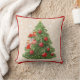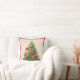 Kissen mit den kleinen Engeln werfen Dekorieren der Weihnachtsbaum durch ein Ornament mit einem Hintergrund von blassen Schneeflocken.