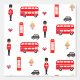 Doubledecker Bus, Guardman, Queen and Telephone booth in a cute pattern of England symbos. © and® Bigstock® - All Rights Reserved.