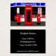 Collage der traditionellen englischen Ikonen - rote Telefonzelle und roter Postkasten vor einem Fisch und kaufen. Dieser Entwurf ist unter Verwendung der Fotografien geschaffen worden, die digital manipuliert worden sind. Die perfekte Karte für die Person die Lieben alle Sachen englisch. sgb01