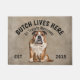 English Bulldog Personalisiert Dog Liebhaber willkommen vor der Tür. Diese Begrüßungsmatte kann mit dem Namen Ihres Hundes personalisiert werden, der Slogan kann auch geändert werden oder Sie können ein Foto Ihres eigenen Hundes verwenden (stellen Sie sicher, dass es transparent ist). Im Text steht: Butch wohnt hier... Alle Leckereien begrüßen das Bearbeiten des Designs, um den Schriftart, die Farben und die Hintergrundfarbe zu ändern. Verwenden Sie beim Ersetzen des Hundes ein transparentes Bild. Ein wunderbares Geschenk für ein Party, Ferien, Hundefreunde und für jeden Anlass.