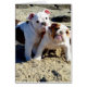 Ein Foto von zwei englischen Bulldoggen Welpen am Strand