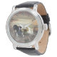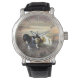 Uhr, Vintage Männeruhr mit schwarzem Lederarmband