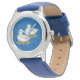 Kinderuhr aus Edelstahl mit blauem Lederarmband