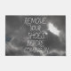 Dies ist ein cooler dunkler Cloud-Druck große Tür, die sagt: 'ENTFERNEN SIE IHRE SCHUHE, BEVOR SIE EINKOMMEN' in großen weißen Buchstaben. Hoffentlich sind alle schon barfuß, wenn man die Tür öffnet!