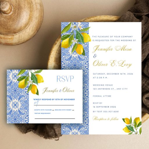 Italian Tiles Lemon Theme Wedding InvitationsDesignt von Gloria Designs Boutique