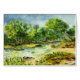 Ein kleiner Rowboat wird am Ufer nahe einer Schmutzbootsrampe auf einer friedlichen und abgelegenen Ausdehnung des Ocklawaha Flusses in dieser ländlichen Szene von altem Florida gebunden. Die Flussszene wird durch üppiges Laub einschließlich die verschiedenen Bäume umgeben, die den schmalen Fluss überhängen und schattieren. Gefallene Klotz und WasserPflanzenleben wie Wasserlilien, Schilfe und Cattails erscheinen und entlang im Strom. Ein Paar Vögel fliegen in den klaren blauen Himmel oben. Farben von Grünem und von Blau beherrschen die Malerei mit Touchs der braunen und gelben Erdtöne. Die ursprüngliche Aquarellmalerei auf Papier ist durch JC Prida © 2012. Gedruckt von einer ursprünglichen Kunstmalerei auf Papier durch JC Prida.