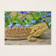 Ein Bartdrache, der sich draußen von blauen Blumen entspannt.