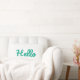 Dieses niedliche Kissen sagt hallo im Blau.
