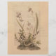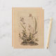 Eine schöne, antike botanische Illustration überlagert sich über handgeschriebenen und typisierten Text auf dunklem Pergament-Hintergrund. Die Rückseite ist in einer ergänzenden dunklen Pergamentfarbe, ohne Text oder Bilder. Sehr schönes Papier.