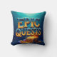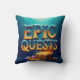 Ein lebendiges Aquarellbild mit dem Satz "Epische Quests" in einer kühlen, künstlerischen Schrift. Die Briefe sind mit goldenen Akzenten geschmückt und von einer Schatztruhe umgeben, die mit Juwelen und Goldmünzen überflutet ist. Der Hintergrund ist tiefblau und erinnert an die Tiefe des Ozeans, was das Gefühl von Abenteuer und Schatzsuche noch verstärkt.