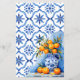 Er sagte, sie sagte das Spiel Talavera blauen chinoiserie caramic Vase mit Orangen Zitrus Brautparty Spielkarte, Spanisch Mittelmeer Talavera Fliesen Sommer Zitrusfrüchte Brautparty Spiele
