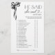 Feiern Sie die Quirschen, Romantik und kleine Überraschungen, die ein Paar Liebe Geschichte einzigartig mit diesem "He Said"-Spiel machen. Diese interaktive Aktivität, die mit zeitloser Eleganz entworfen wurde, lädt die Gäste dazu ein, zu erraten, wer was gesagt hat - und eine reizvolle Mischung aus Nostalgie, Spaß und einer Touch freundlicher Konkurrenz zu schaffen. Das klassische schwarze Band-Motiv und die polierte Typografie sorgen dafür, dass selbst die spielerischsten Momente sich raffiniert und schön kuratiert fühlen. Dieses Spiel ist eine ideale Ergänzung zu Brautpartys, Verlobungsfeiern oder Abendessen in der Probe und verbindet Lachen mit Geschichtenerzählen. Es bringt die Gäste naher zu den beiden und fühlt sich intim und feierlich an. Egal ob Sie einen schicken Brunch, eine glamouröse Soirée oder einen eleganten Nachmittagstee planen - dieses Stück passt nahtlos in jede Veranstaltungslandschaft. Suchen Sie nach einer Koordination von Designs, einer benutzerdefinierten Formulierung oder einer einzigartigen Farbpalette? Der Designer steht Ihnen zur Verfügung, um Ihre Vision mit maßgeschneiderten Details zum Leben zu erwecken, die Ihre Feier bereichern. Copyright Anastasia Surridge, alle Rechte vorbehalten.