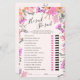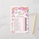 Mit diesem "He Said, She Said"-Spiel können Sie Ihrem Brautparty oder Junggeselinnen-Abschied Lachen und Spaß hinzufügen. Die Gäste werden erraten, wer jede Aussage gesagt hat, indem sie den Bogen für ihn oder die Lippen für sie markiert. Mit bohonen Aquarellfloralen in Rosa, Pfirsich und Lavendel ist diese Spielkarte der perfekte Eisbrecher für Ihre Feier!