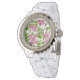 Erbsen und Hummeln, süß, rosa, grün und weiß Armbanduhr