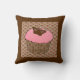 Erdbeere Rosa Mattierter Kuchen mit einem Schokoladenschmetterling überzogen in einem dekorativen, schokoladenbraunen Damast gemusterten Kuchen Wrapper, auf einem braunen, bräunlich und korallenrosa chinesischen geschmolzenen Hintergrund werfen Kissen
