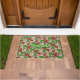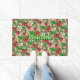 Erdbeere verlasse, Obst und Blume. Benutzerdefinierte Hintergrundfarbe. Nahtloses Muster. Eigener Text.