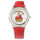 Kinderuhr aus Edelstahl mit rotem Lederarmband