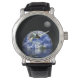 Uhr, Vintage Männeruhr mit schwarzem Lederarmband