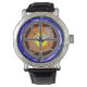 Uhr, Vintage Männeruhr mit schwarzem Lederarmband
