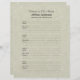 Dieses 8,5" x 11" kundengebundene Füllerseite, in einem Büttenpapierentwurf des Imitats mit schwarzer Beschriftung, ist personalisiert und vervollkommnet, um Mappenart Erinnerungsbücher oder Gast-Bücher zu füllen. Dieses Notizbuchfüllerpapier ist einfach zu personifizieren - drücken Sie Ihr eigenes Gefühl aus, ändern Sie Namen und löschen Sie oder ändern Sie Daten. Seite wird vor-formatiert, um Teilnehmer ihr Kontaktinfo und eine Mitteilung addieren zu lassen, während sie herein unterzeichnen, 4 Namen pro Seite. Sie benötigen Lochungen, Ihre Mappe zu passen. Alle Rechte vorbehalten © Alan 2014 u. Marcia Socolik