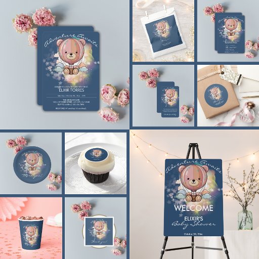 Die "Adventure Awaits Bear Hot Air Balloon Baby Shower Collection" ist voll von spielerischem Charme, mit pastellfarbenen Heißluftballons, die zwischen flauschigen Wolken und funkelnden Sternen schweben. Diese Kollektion, die ein Gefühl von Staunen und Abenteuer weckt, ist ideal, um die bevorstehende Reise der Kleinen zu feiern. Die Babyakzente tragen zu einer süßen und skurrilen Touch bei. Wenn Sie ein anderes passendes Produkt oder eine Anpassung benötigen, wenden Sie sich bitte per E-Mail an Zazzle.