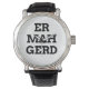 Dorky und lustige Typografie Text Design Uhr mit einem Wort aus dem beliebten Meme von Ermahgerd. Ermahgerd ist ein sehr unausstehlicher und lispitiver Weg, um zu sagen: "Oh mein Gott!" Passen Sie Ihre eigene Text- und Hintergrundfarbe an. Verwenden Sie einen ermahgerten Übersetzer wie diesen [http://ermahgerd.jmillerdesign.com/#!/translate], um Ihren personalisierten Text noch alberner zu machen!