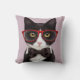 Entwurf einer Hipsterart Tuxedokatze, die rote Spezifikt. und schwarzes bowtie auf lila Hintergrund trägt. Digital-Illustration durch Maryline Cazenave.