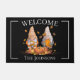 Erntedank Gnome Welcome Doormat: Herzlich Willkommen auf Ihrer Zuhause mit dieser eleganten Herbstgönnhaustüre, die Ihnen eine charmante Touch in Ihrem Herbstdekor verleiht. In diesem Design steht oben das Wort "willkommen", in Weiß geschrieben für die Personalisierung und verleiht Ihrem Eingang ein gemütliches, individuelles Ambiente. In der Mitte bringen zwei bezaubernde Aquarellbäume den festlichen Geist des Sturzes zum Leben - einer mit einem Stück Kuchen, der andere mit Stolz mit einem Truthahn. Umgeben von pulsierenden Kürbissen zu ihren Füßen und herbstlichen Blättern, ist diese skurrile Szene in Weiß gerahmt, vor einem auffallenden schwarzen Hintergrund. Fügen Sie unten Ihren Familiennamen oder Ihre persönliche Nachricht für eine wirklich einzigartige Touch hinzu. Diese herbstgezogene Türmchen vervollständigt Ihre Vorhalle oder den Eingang und vereint Wärme und Eleganz mit saisonalem Charme.